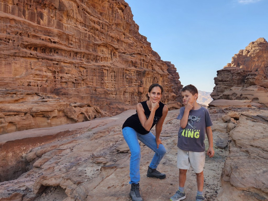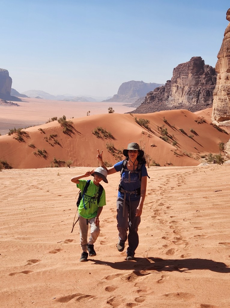 יצאנו לטייל כל המשפחה בואדי ראם. ב15 השנים האחרונות הגעתי לשם הרבה פעמים לטפס על המצוקים האדירים, אבל הפעם רציתי לחלוק עם המשפחה את המקום המדהים הזה. באחד הימים דקל רצה לטפס לבד על אחת הדיונות הגדולות בלילה. אנחנו לא הסכמנו. דקל מאוד כעס ובסוף אני טיפסתי איתו על הדיונה בלילה וניסיתי לפייס אותו בדרך למטה. אמרתי לו שאני מאוד אוהב אותו וזה נשמע בערך ככה: