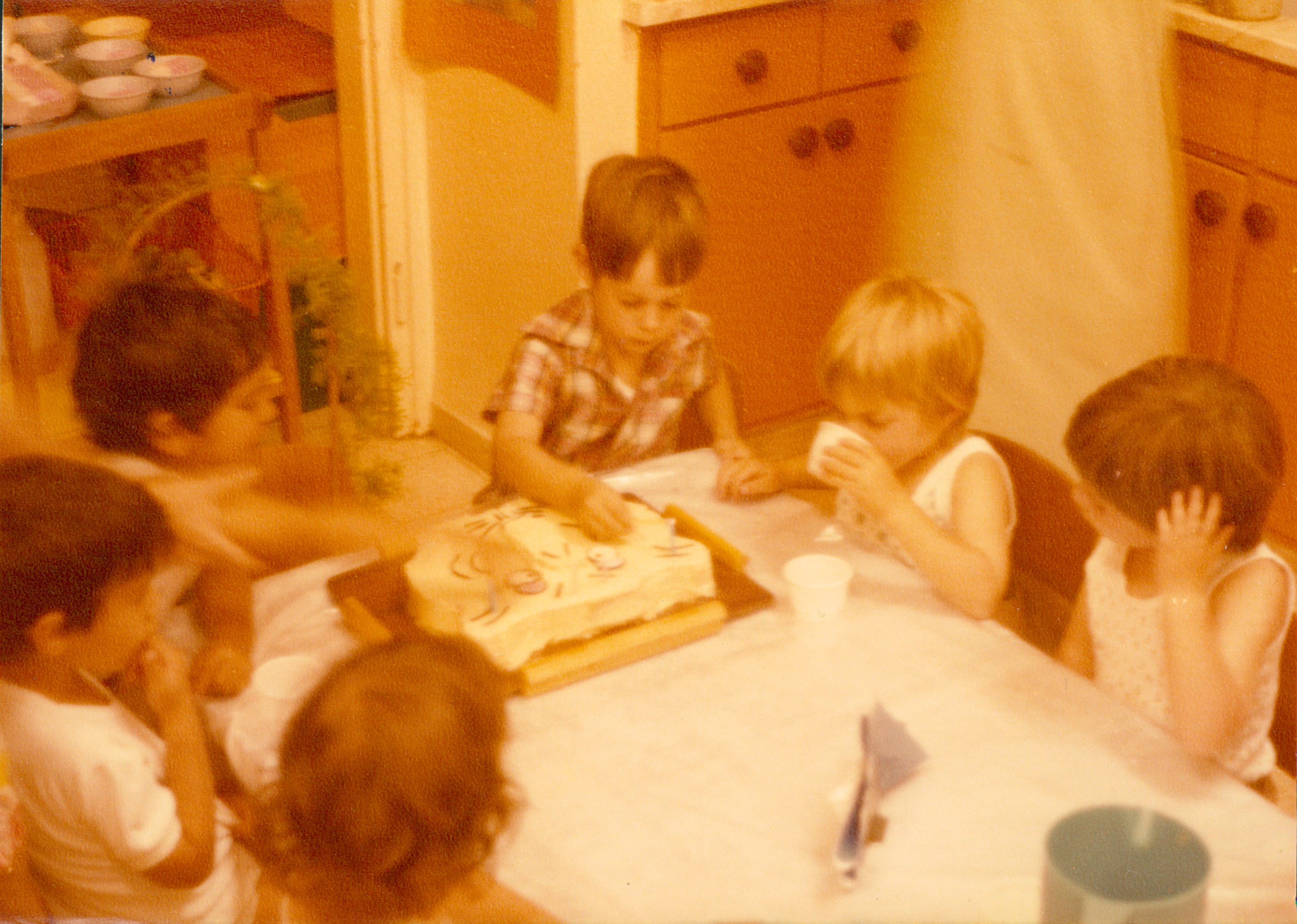 וכמובן, הלינה המשותפת והמוסד החינוכי, ופורים קטן ופורים גדול ותיקון חצות ועץ האופניים, סביבונים בחנוכה, ריקוד מיכלזונים, גיוסים בכותנה, יום עבודה בשבוע וכיתת ארזים ואולי גם רימון. מהלינה המשותפת יש לי בעיקר זכרונות טובים אבל היתה פעם אחת כשהייתי אולי בן 5 והייתי חולה והיה חורף וקר ויצאתי מהמיטה והלכתי יחף על הרצפה הקפואה ועמדתי מול הקופסה על קיר שאמורה להיות מחוברת באיזה קסם לשומרת הלילה וקראתי "שומרת לילה, בואי לחצב, שומרת לילה בואי לחצב" במין מנגינה ששמורה לילדים קטנים ושומרות לילה, ככה אולי שעה ואף אחד לא בא ואז הקאתי והייתי מותש וחזרתי לישון. על אריחי הסומסום נשאר כתם חלבי מהקיא שניקו הגננות רק בבוקר. והשבוע הכי כייף כשאמא שלי היתה שומרת הלילה ואז היה סיכוי שתבוא גם אלי בלילה אם אני ארגיש לא טוב ואם לא יצטרכו אותה מישהו מהגנים היותר קטנים.