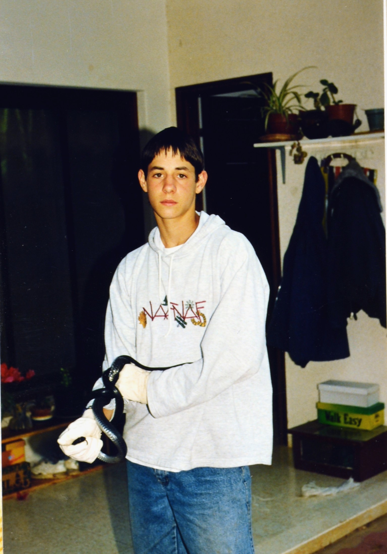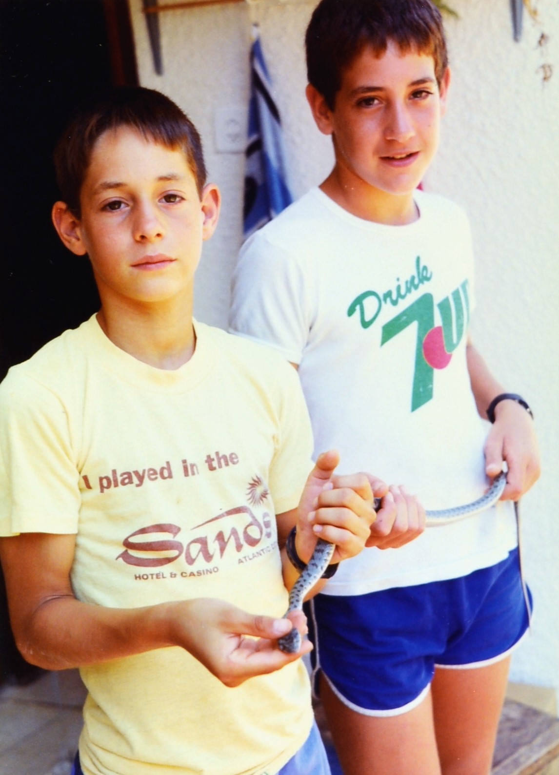 טוב, זו רק ההתחלה… היה לנו חדר נחשים, יותר כמו מחסן שלם מלא בנחשים שאספנו בסביבות הקיבוץ וגידלנו. כדי למצוא את הנחשים הייתי מסתובב מחוץ לקיבוץ שעות, כמעט כל אחר הצהריים בקיץ, בלא שאיש יודע איפה אני, לאן הלכתי או מתי אני חוזר. גידלנו גם את העכברים שהזינו את הנחשים וגם מדי פעם בז או שניים שנפלו מהקן וכדי להאכיל אותם היינו טומנים מלכודות ליונים שבמגדלי השמירה הריקים. את הנחשים מאוד אהבנו אבל היתה מעט מאוד אמפתיה לשאר בעלי החיים בשרשרת המזון.