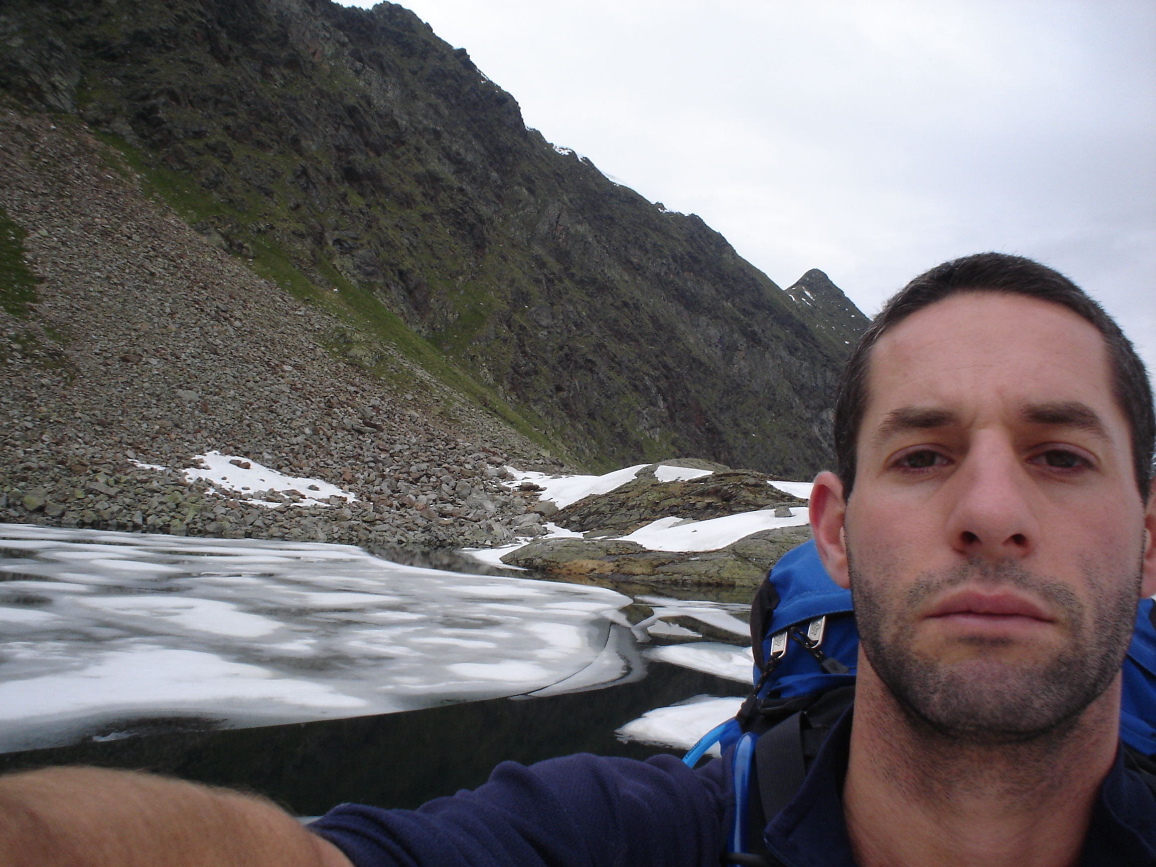 קמתי מוקדם, תשוש אך נחוש קיפלתי את האוהל הרטוב, את הבגדים המסריחים, העמסתי הכול לתיק ויצאתי לדרך. תחילת הטיפוס בדרך מסומנת, וכשהיא נגמרה התחיל שביל שלמרות שלא היה מסומן, היה מספיק ברור ע"מ לעקוב אחריו בקלות. הגעתי לפסגה הראשונה (2900 מ') בסביבות 10 בבוקר. אחרי ארוחת בוקר זריזה המשכתי בהליכה. כעת הדרך הברורה נפסקה והטיפוס נעשה יותר קשה וטכני, טיפוס אמיתי עם תיק וידיים קפואות, וגם מציאת הדרך הפכה להיות בעייתית כשאני חוזר על עקבותיי לעתים ע"מ למצוא את הדרך הנכונה. מפה לשם מתקרב הצהריים ואני בעיצומו של הטרוורס, הנקודה הגבוהה ביותר במסלול (3200 מ') כבר נראית לפני אך עדיין רחוקה. אני עולה בדרדרות 2:1 (שני צעדים למעלה, אחד למטה. כמו ריקודי עם…), מדשדש בערימות שלג ונאחז בסלעים מתפוררים. בקיצור – חווית הטיפוס לה קיוויתי 😊 פחות או יותר