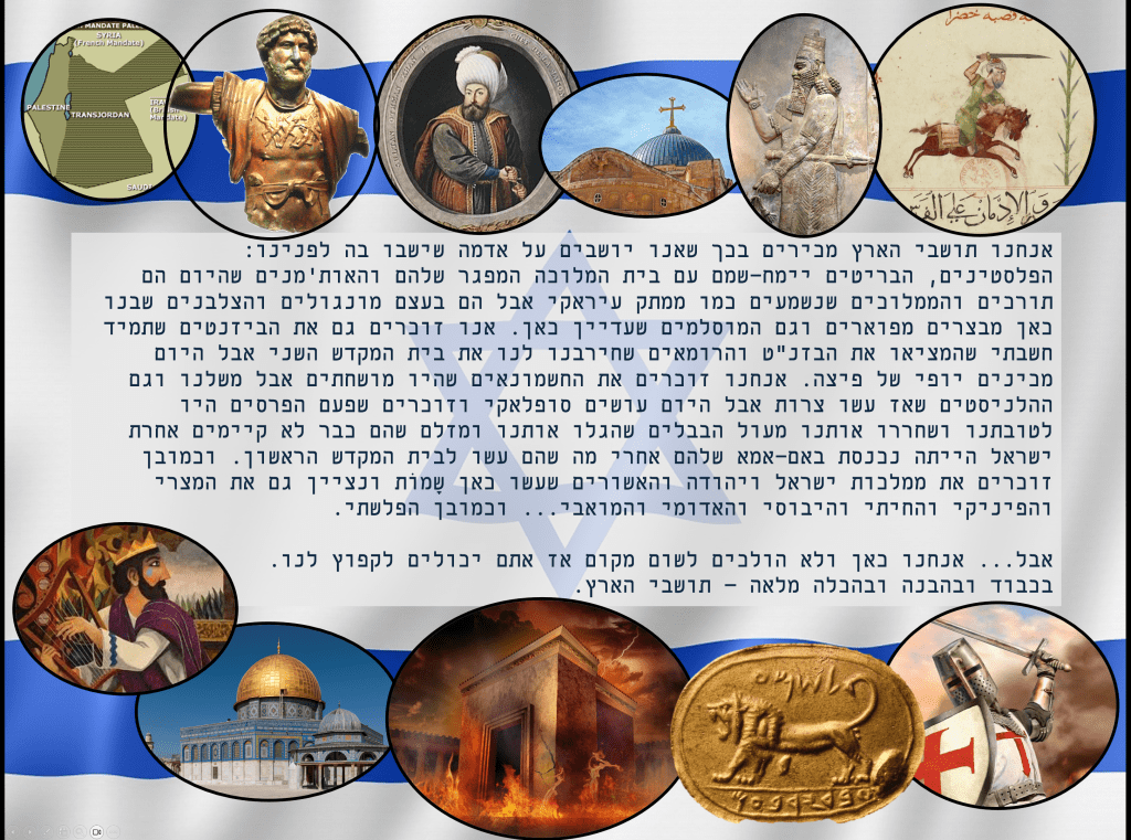 אז החלטתי, בתור שירות לציבור לייצר שקופית Land Acknowledgement עבורינו כאן בארץ הקודש. קצת קשה להכניס את הכול לשקופית אחת אבל בכל זאת ניסיתי: