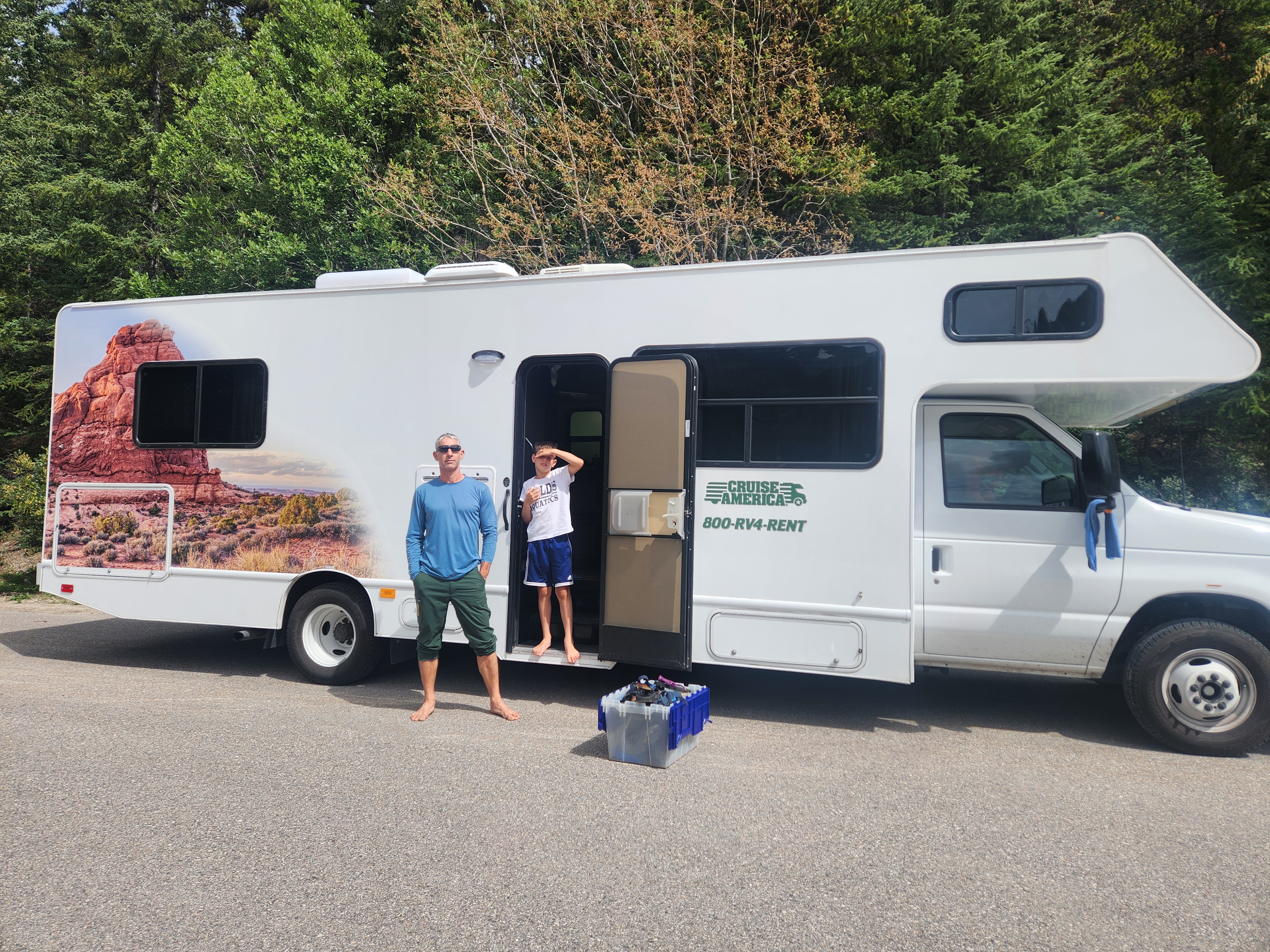 את הטיול עשינו בקרוואן של שלושים פיט כדי שיהיה מקום לכולם. יש בפנים מיטה זוגית להורים, מיטה וחצי למתבגר ועוד שתי מיטות קטנות לקטנים. היה די צפוף, ולפעמים הרוחות סערו אבל עם מספיק משחקי קלפים, תפוצ'יפס, ספרים ושוקולד משפחה מסוגלת לשרוד שם לכמה שבועות.