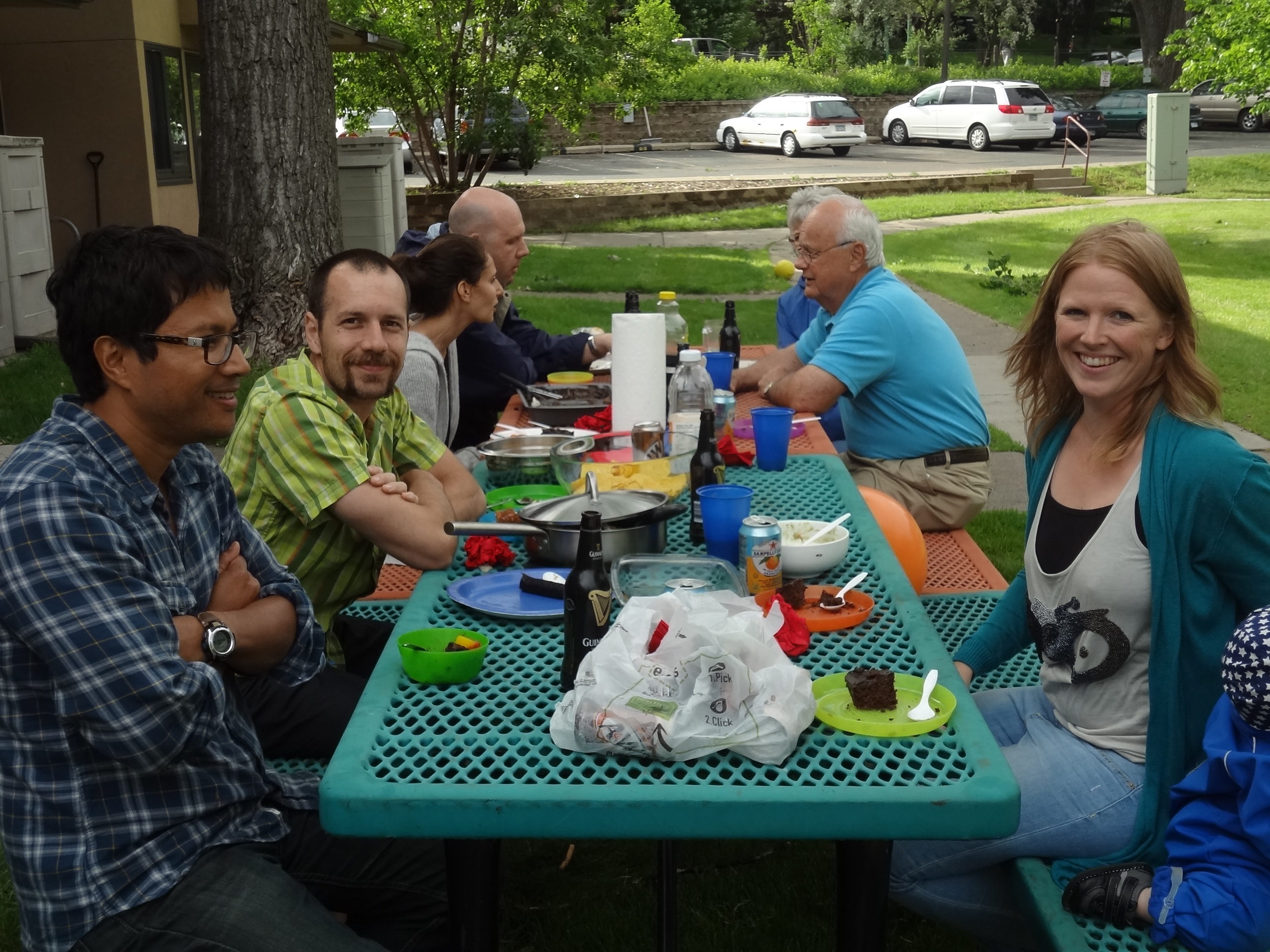 עדי מתקדמת יפה בפוסט ואחרי כמה חודשים ראשונים קשים שבהם הבקטריות והאמריקאים לא עבדו כמו שצריך, כעת יש הצלחות קטנות (בצלחות קטנות) שמבשרות, כך אנחנו מקווים, על כוון מחקר מבטיח. האנשים במעבדה מנומסים, מסוגרים וממעטים להסתובב יחדיו. עדי, שרגילה לחבורת קיבוצניקים עליזה בפקולטה לחקלאות, החליטה שגם ספסימנים קפואים אלו ישתפו איתה פעולה ויהיו לחברה נעימה ומגובשת. לשם כך היא חיכתה שהכל יפשיר – גם השלג וגם האנשים. גילינו שיש מתאם בין חום האוויר לחום האנושי, ועתה שהקרח נמס, פתאום אומרים לנו שלום במדרכות ועוברים ושבים מחייכים זה לזה. ובכן, עדי הכינה עוגיות שיבולת שועל (מעולות, עם שוקולד צ'יפס, ובקושי מרגישים את השועל) והזמינה את חברי המעבדה החוצה לחגוג את בוא האביב. שניים נענו לבקשתה, גם אני באתי לחיזוק וביחד יצאנו לדשא לאכול א. צהריים. בבקרים עדי מקפידה לברך אותם ב"בוקר טוב", כי אם לא, הם יכולים להעביר יום שלם בכפיפה אחת מבלי להחליף מילה. ככה זה, נחמדים אבל קרירים