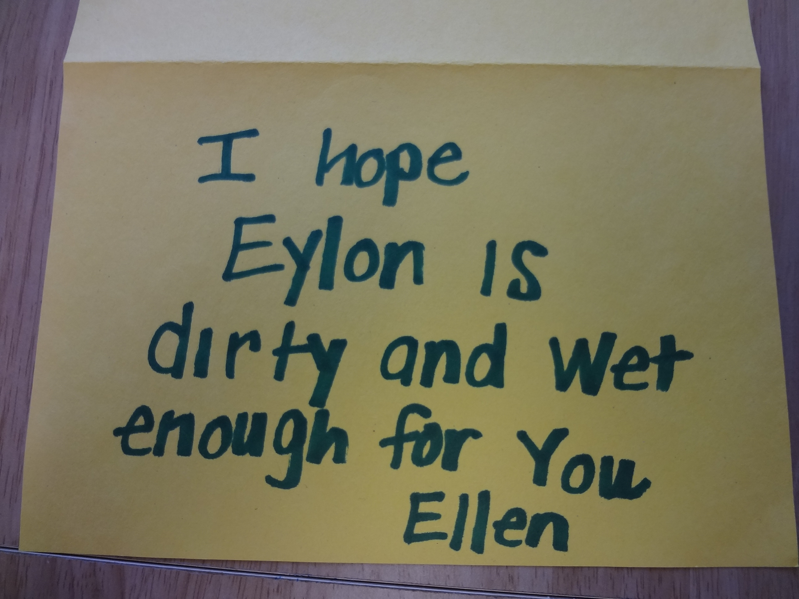 בגן הילדים מבלים הרבה בחוץ, וכשאני בא לאסוף אותו בסוף היום בד"כ מקבל את פני זעטוט מלוכלך ומג'וייף. כל פעם שזה קורה הגננת מתנצלת שהיא עדיין לא הספיקה לנקות אותו, ואני מסביר לה שזה בסדר גמור שהוא מלוכלך ושככה ילד צריך להראות בסוף היום. אחרי כמה פעמים שהסיפור הזה חזר על עצמו, נמאס לי לשמוע התנצלויות אז אמרתי לגננת שאם מחר כשאני מגיע אילון לא נראה כמו אחרי קרב שוחות במלחמת העולם הראשונה, אז אני לא אקח אותו הביתה ואתם תצטרכו למצוא לו פתרון עד היום הבא. למחרת חיכה לי ילד מבוצבץ, מאובק ומאושר. חיכה לי גם מכתב מהגננת: סתם